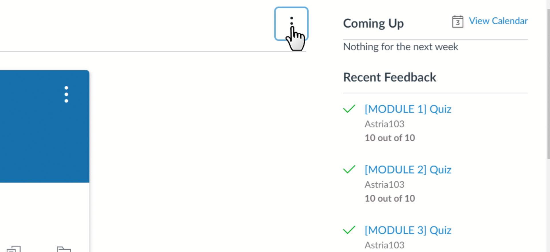 The Dashboard is the first thing you see when you log into Astria LMS. It provides a high-level overview of your courses.